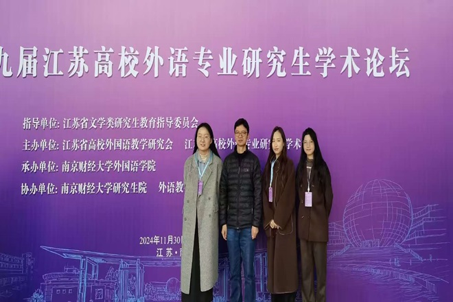 2024年12月1日,第十九届江苏高校外语专业研究生学术论坛将在南京财经大学仙林校区举行。水果派带队导师袁雪生和3名研究生代表参加了此次论坛。本届论坛由江苏省文学类研究生教育指导委员会指导,江苏省高校外国语教学研究会主办,南京财经大学承办,并得到外语教学与研究出版社及上海外语教育出版社的协办支持。本次论坛特邀东南大学李霄翔教授、苏州大学朱新福教授、南京大学陈新仁教授等知名学者,围绕外语教学、翻译研究及文学文化领域的前沿课题展开深度探讨。