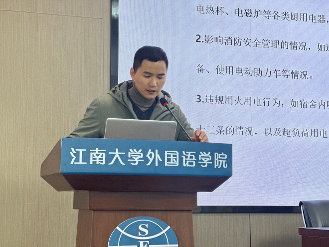 学生违纪处分规定》,向大家介绍了诚信考试的基本要求和重要性,强调了考试作弊的严重后果,通过列近期学生发生的考试作弊案例,引导学生们从中吸取教训,认真复习备考,树立诚信考试观念。冬季气温降低,学生宿舍用电安全问题进一步凸显。会议上,苗文建结合学校的《关于加强冬季防火、用电安全管理的通知》、《关于开展学生宿舍冬季用电安全专项检查的通知》,强调了宿舍严禁使用违章电器,严禁违规用火用电等行为。