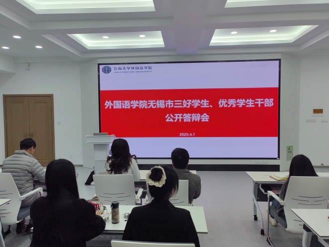 于4月1日下午在A206会议室举行“无锡市三好学生”等荣誉公开答辩会。学院党委副书记、副院长季王飞、分团委书记顾海星、辅导员苗文建、朱家烨以及学生代表参加并担任评委,学院部分学生现场观摩学习。