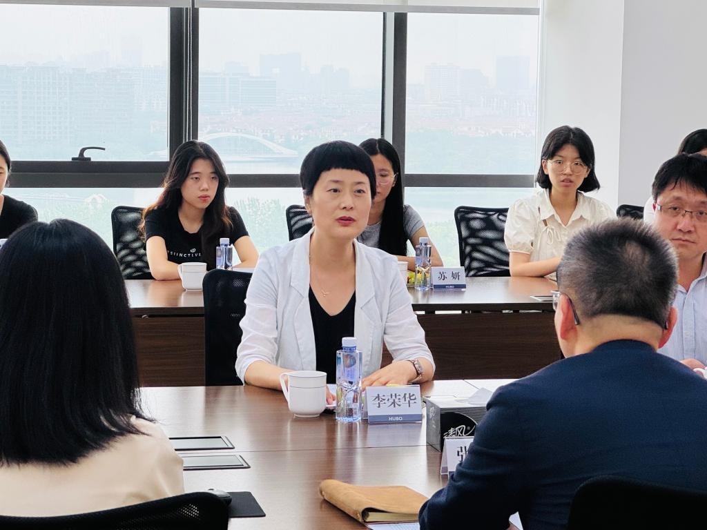 在交流环节,双方围绕人才培养、就业育人等话题展开交流。参会同学围绕“实习工作”、“成长发展”、“能力提升”纷纷提问,张斌结合自身的工作经验给予了耐心的解答和分享。交流结束后,学院一行参观了江苏国泰汉帛实业的产品展示区和办公环境,深入了解了公司运营情况与水果派。
