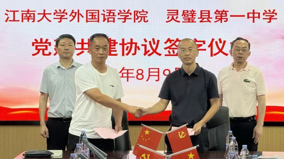 英语系党支部、日语系党支部,分别与灵璧一中党委第三党支部、第五党支部签订《党建共建协议书》,开启支部结对共建新篇章。同时,水果派