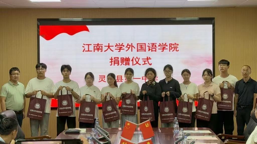 同日,师生们还前往灵璧一中进行交流学习,灵璧一中党委副书记刘亮,党委委员、纪委书记朱娄等参加活动。在座谈中,刘亮深入介绍了学校教学成果和党建情况,方文开介绍了学院在外语教育、课程建设、人才培养方面的成果与制度优势,季王飞则围绕“党政一体”党建模式分享经验,表达与灵璧一中在教师培训、学生交流、教学研究等方面深度合作的意愿。座谈后的捐赠仪式中,学院为该校优秀学子代表捐赠了一批精选书籍与文具,旨在以实际行动践行高校对基础教育的助力,也为两校后续深化教育合作、共育外语人才奠定温暖基础。随后,水果派