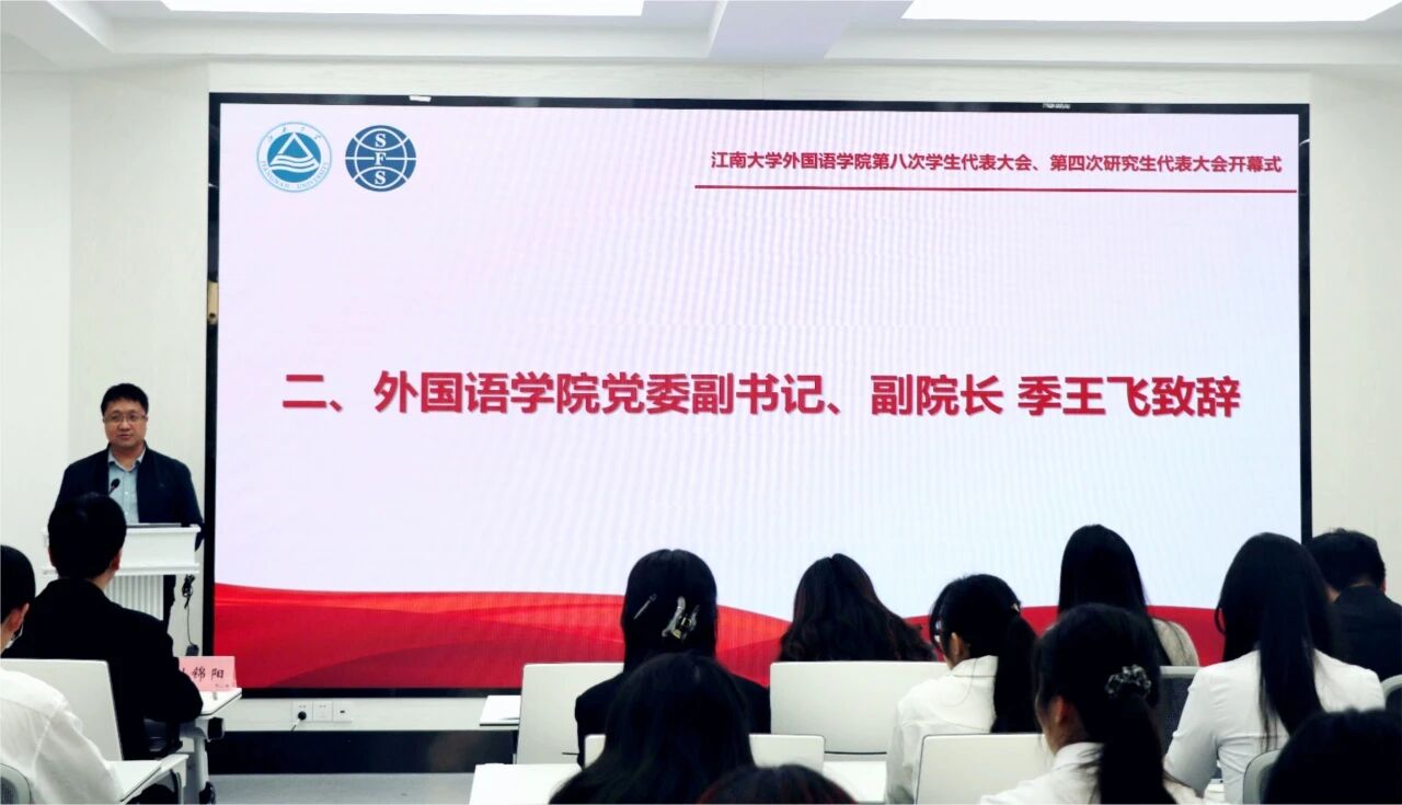 开幕式在嘹亮的国歌声中拉开帷幕。首先,季王飞致辞。他强调,青年学生生逢其时、重任在肩,当志存高远,将个人成长融入国家发展大局;需脚踏实地、锤炼本领,在服务同学中实现自我成长。新一届学生组织要传承优良传统,建设一支政治坚定、作风优良、运行高效、勇于创新的骨干队伍,为讲好中国故事贡献青春力量。希望同学们以语言为桥,以文化为媒,在强国复兴实践中彰显外语人的责任担当,书写无愧于时代的青春答卷。