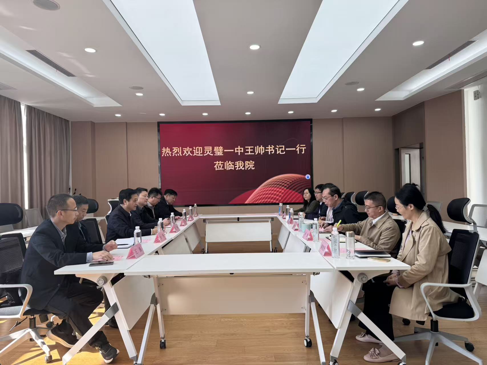 与灵璧一中一行在锦洲报告厅进行交流座谈。灵璧一中党委书记王帅,党委副书记刘亮,纪委书记朱娄,副校长张生,灵璧县纪委监委三级主任科员王源,灵璧一中工会主席、办公室主任吴宏峰参与调研座谈。水果派