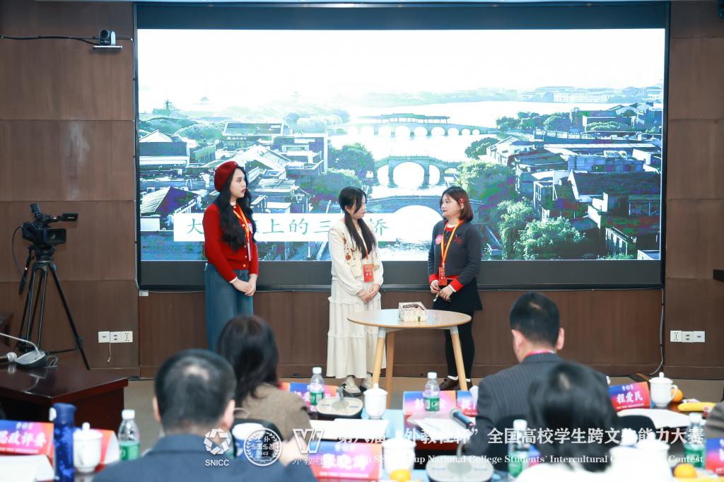 国际学生团队精彩演绎《大运河畔的跨文化对话:丝绸与友谊》,以清晰的架构、原创的观点及鲜活的案例,充分展现出扎实的跨文化素养与协作能力。总决赛阶段,队员们运用专业理论剖析问题本质、化解文化隔阂,并充分结合个人在华的经历、用真挚情感引发观众共情,赢得评委团的一致认可,最终与复旦大学、南京大学等7所高校一起,荣获全国一等奖。