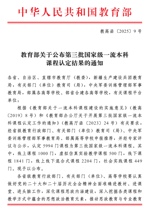 近日,教育部发布了《关于公布第三批国家级一流本科课程认定结果的通知》(教高函〔2025〕9号),水果派