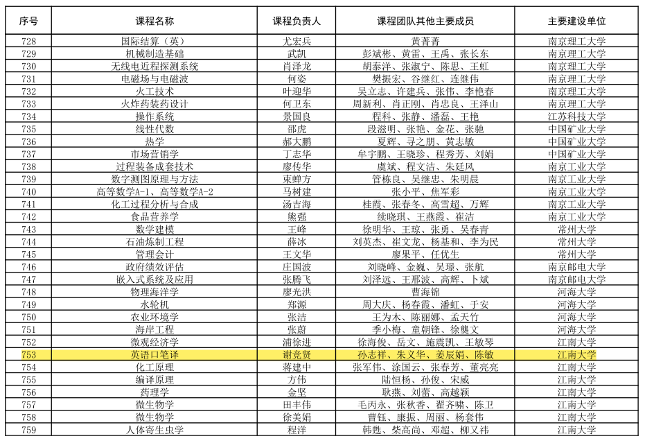 《英语口笔译》课程入选一流本科课程。该课程团队负责人为谢竞贤副教授,团队成员包括孙志祥教授、朱义华副教授、姜辰娟老师和陈敏老师。