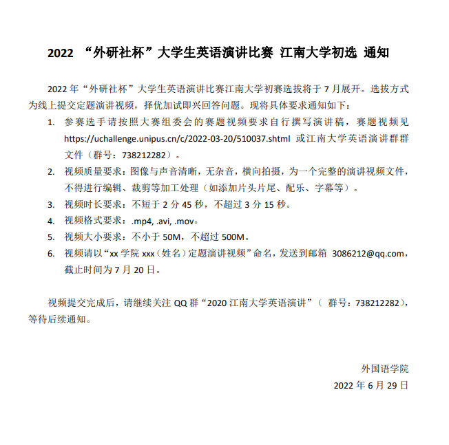 2022“外研社杯”大学生英语演讲比赛水果派 初选通知