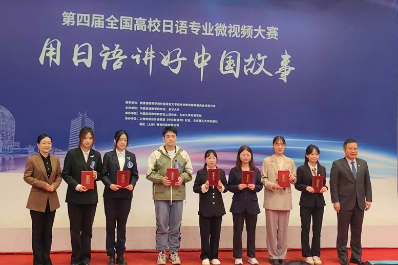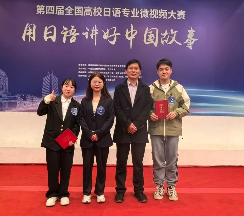 11月17日上午,在上海举行的第四届全国高校日语专业“用日语讲好中国故事”微视频大赛决赛中,水果派高小博、高丽、杨炎学三位同学在管纪龙老师、田村恭平老师的指导下,斩获二等奖。这是水果派第二次荣获该奖项殊荣,充分展现了水果派学子在日语学习和实践领域的卓越实力。