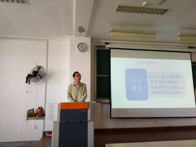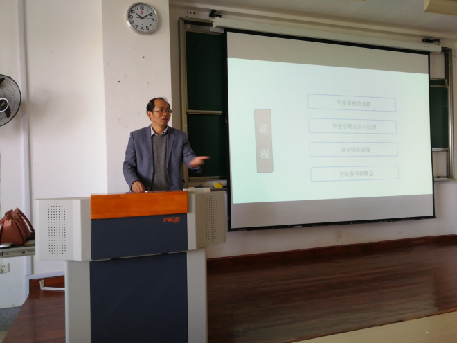 会上,党委副书记刘伯贤对2018届毕业生目前考研就业形势进行小结,介绍当前的就业整体情况,总结学生就业存在的系列问题,强调毕业季的安全和稳定工作,并就改善就业观、积极推进就业提出几点希望。方文开副院长就毕业季的教学安排工作进行梳理,提醒每一环节的时间节点。