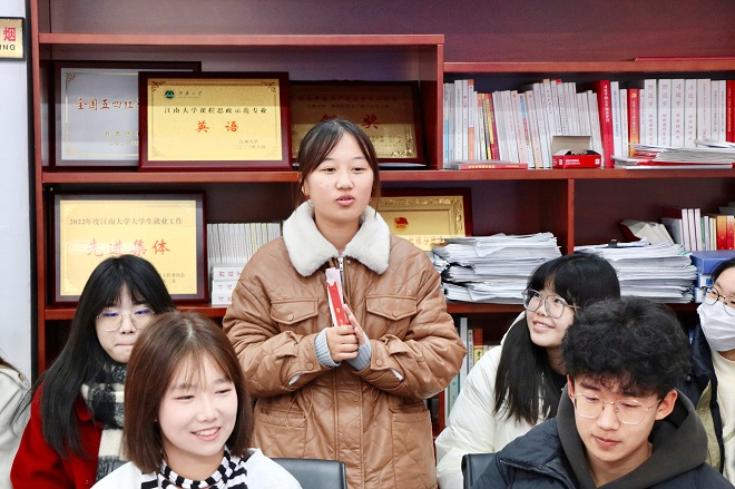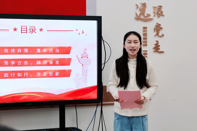 活动伊始,优秀学生代表高子涵围绕“自信自强,青年担当”、“笃学励志,踔厉奋发”、“励行知行,守正创新”三个方面,分享了自己在校期间的学习经验及参加各种志愿活动的心得感悟。她鼓励学弟学妹们要继续追寻理想,以自己的优秀成为江南人的骄傲。