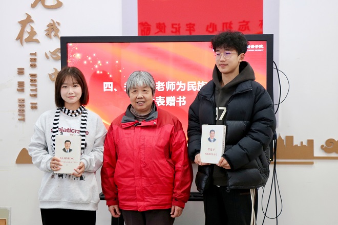 活动中,鲍国庆向民族学生代表赠送了英文版、日文版《习近平谈治国理政》、《大学英语四六级真题》等书籍,并勉励在场学生与书为伴,多读书、读好书、好读书。